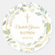 Cuenta con un jardín de laurel decorativo, anillos de oro y cruz de oro. Personalice con su bautismo especial o detalles de bautizo en este elegante pegatina neutral en cuanto a género. Diseñado por Thisisnotme©