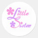 Camisetas de hermanita, trajes de ropa, tarjetas, bolsos de té y otros artículos de hermanita con diseño de texto rosa bonito y lavanda.
