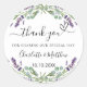 Un elegante fondo blanco decorado con flores de lavanda y vegetación de eucalipto. Personalice y agregue sus nombres y fecha de boda. Con el texto: Gracias por compartir nuestro día especial.