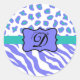 Encontrará muchos usos para este pegatina decorativo con su monograma inicial. Disfrute de esta sofisticada y elegante combinación de piel de rayas de cebra y piel de leopardo o de chita personalizada con su monograma inicial. Este popular y moderno modelo de diseño de estampado de cebra y leopardo morado y blanco de lavender periwinkle está disponible en varias combinaciones de colores. Un emblema periwinkle sobre una franja azul turquesa verde azulada o aqua crea un área de personalización para tu monograma o nombre. Esto es totalmente personalizable y está disponible en varios productos de coordinación en esta tienda.
