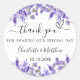 Un elegante fondo blanco decorado con flores de lavanda de color agua. Personalice y agregue sus nombres y fecha de boda. Con el texto: Gracias por compartir nuestro día especial.