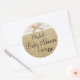 Pegatina Redonda Lazo blanco y el Baby Shower de Burlap