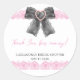 Pegatina moderna y elegante de agradecimiento para Boda de Shower con un lazo de coqueta negro estilo acuarela con borde de cinta rosa de encaje con corazón y texto de caligrafía vibrante.