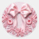 Pegatina Redonda Lazo de Navidad rosa de bordado