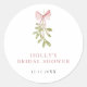 Celebra a la futura novia con este diseño de pegatina de despedida de soltera de invierno minimalista que presenta una impresionante ilustración de acuarela de muérdago con un lazo suave de color rosa polvoriento.