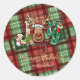 Pegatina Redonda Leche de búfalo verde rojo, Snowman