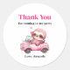 Fiesta gracias pegatinas con un ilustracion caprichoso. Un perezoso rosa conduciendo en un descapotable rosa. Adorable.
