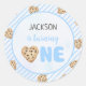 Pegatina Redonda Leche y galletas azul Fiesta de primer cumpleaños