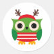 Pegatina redondo clásico de búho de Navidades rojos y verdes