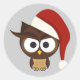 Pegatina Redonda Lechuza enojada usando Santa Hat