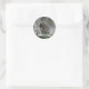 Pegatina Redondo Clásico de Búho Pigmeo del Norte. Una pequeña lechuza pigmea del norte encaramada en una extremidad de árbol. Foto de Dominik Van Opdenbosch.