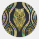 Pegatina Redonda Lechuza Tribal de Oro sobre el patrón de Boho Abal