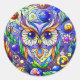 Pegatina Redonda Lechuza Whimsical Con Ojos De Zafiro