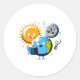 Pegatina Redonda Leer libro de lectura Luna Tierra Sol divertida Ec
