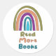 Pegatina Redonda Leer más libros motivacionales boho arco iris colo