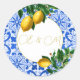 Pegatina Redonda Lemon Boda Blue Tile Monograma
