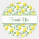 Gracias pegatinas con limones amarillos y hojas verdes, en un patrón repetido. Un cartel blanco con un borde verde se extiende a lo largo del medio con las palabras gracias en el centro.