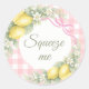 Pegatina Redonda Lemons pink gingham squeeze me party favor