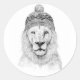 Pegatina Redonda León de invierno (bw)