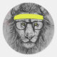 Pegatina Redonda león hipster