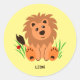 Pegatina Redonda León lindo en la hierba con picadillo