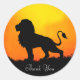 Pegatina Redonda León salvaje y amanecer en una jungla Gracias