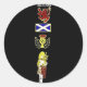 Pegatina Redonda León, silbato, bandera y cordero escocés en tartán