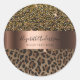 Pegatina Redonda Leopardo negro confetti glam nombre texto
