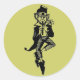San Patricio de San Patricio Leprechaun tocando una flauta en un baile de trajes retro negro mientras toca sus instrumentos musicales en una melodía irlandesa.