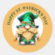 Pegatina Redonda Leprechaun gnome Happy St. Patrick's Day divertido