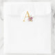 Pegatina Redonda Letra A dorada con flores