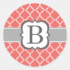 Pegatina Redonda Letra coral blanca monograma B quatrefoil