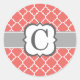 Pegatina Redonda Letra coral blanca monograma C Quatrefoil