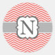 Pegatina Redonda Letra coral blanca monograma N chevron