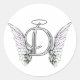 Pegatina Redonda Letra D Monograma inicial con Angel Wings & Halo