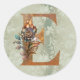 Pegatina Redonda Letra E Floral Steampunk Vintage