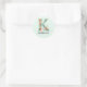 Pegatina Redonda Letra elegante floral natural K nombre personaliza