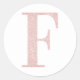 Pegatina Redonda Letra F mayúscula con brillo rosa pálido dorado fe