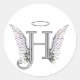 Pegatina Redonda Letra H Monograma inicial con Angel Wings & Halo