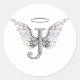 Pegatina Redonda Letra J Monograma inicial con Angel Wings & Halo