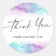 Elegante, personalizado gracias pegatinas con los bordes de las acuarelas moradas y azul acuático arriba y abajo. Una fila de texto de personalizable. Puede agregar más texto y cargar su propio logotipo con la herramienta de personalización.