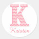 Pegatina Redonda Letra minúscula chevon rosada preppy monograma K
