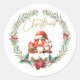 Pegatina Redonda Letra monograma A, Navidades Wreath con Santa Clau