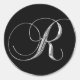 Pegatina Redonda Letra monograma R Sliver sobre sellado Boda negro