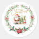 Pegatina Redonda Letra monograma W, Navidades Wreath con Santa Clau