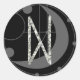 Pegatina Redonda Letra N Rune Monograma geométrico luna rúnica negr