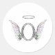 Pegatina Redonda Letra O Monograma inicial con Angel Wings & Halo