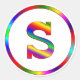 Un monograma colorido con la letra S en colores arcoiris dentro de un círculo arcoiris. Comparte tu orgullo por tu nombre con una alegre y feliz S inicial.