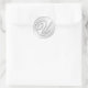 Pegatina Redonda Letra U script inicial faux silver monogram favor