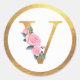 Pegatina Redonda Letra V Monograma rosas rosas rosas rosas Floral y